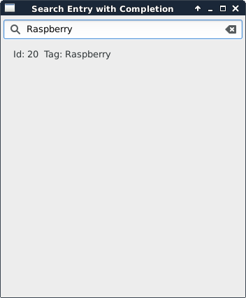 An entry completion object is defined to handle the auto completion function, it contains a list of words which are used to match with the user input given in the search entry. A subset of words in the list which match with the user input will be shown during input process.